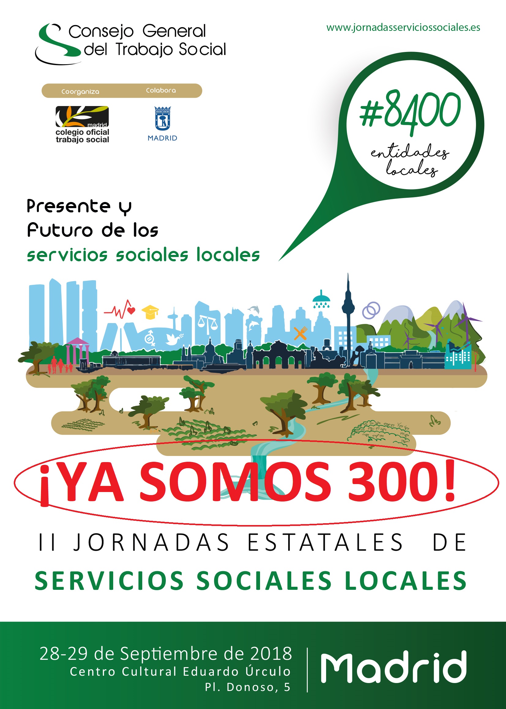 Un total de 300 profesionales de los servicios sociales ya se han inscrito en las II Jornadas Estatales de Servicios Sociales Locales, que se celebrarán en Madrid los días 28 y 29 de septiembre de 2018. Las personas que se inscribieron antes del 14 de septiembre contaron con tarifas reducidas, tanto para colegiados como para no colegiados. En esta última fase de inscripciones, los precios son de 50 euros para colegiados/as y 70 euros para no colegiados/as.